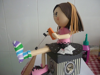 Esta fofu la hice para una chica que se rompió un par de huesos de la pierna en un accidente. Me la pidieron en una caja y con sus muletas y así salió.